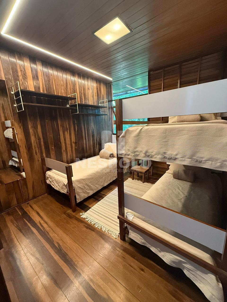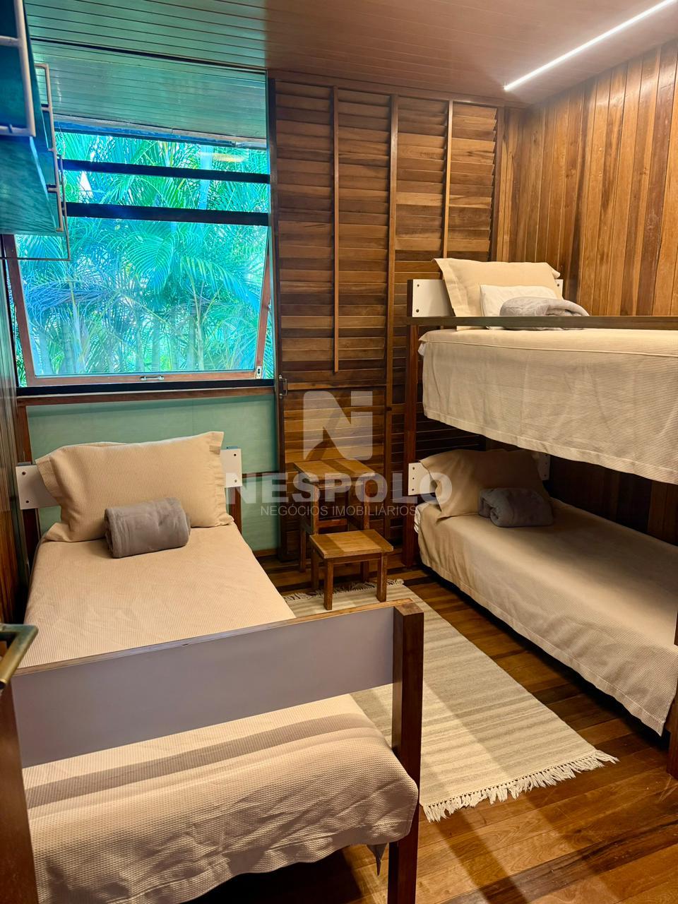São 4 quartos superior, sendo 2 quartos com cama de casal, os outros 2 quartos com 3 camas de solteiro cada.
